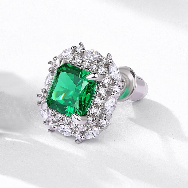Green Cubic Zirconia Silver Halo Earrings