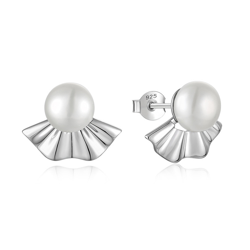 Sterling Silver Domed Pearl Stud Earrings