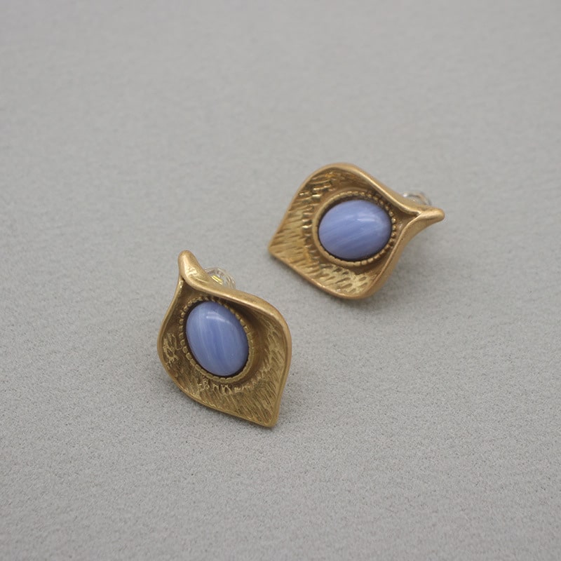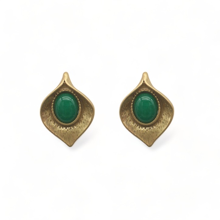 Brass Inlaid Natural Jade Stud Earrings
