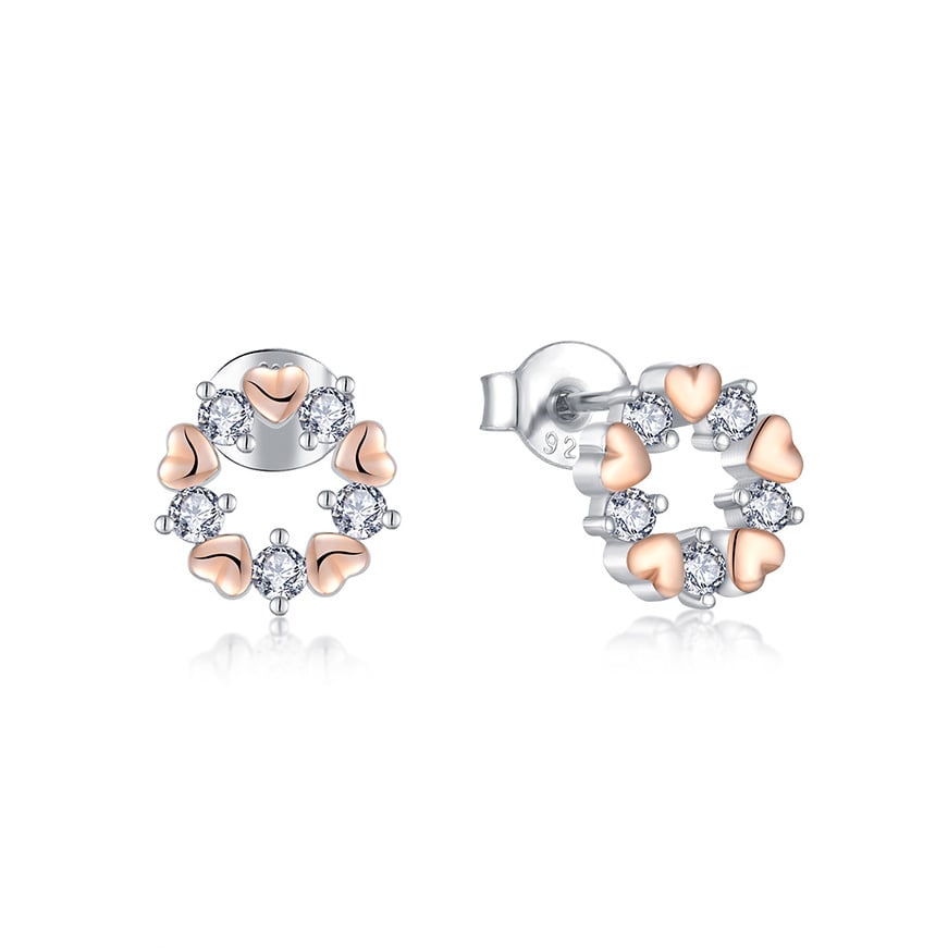 Sterling Silver Rose Gold Plated Love Ear Studs