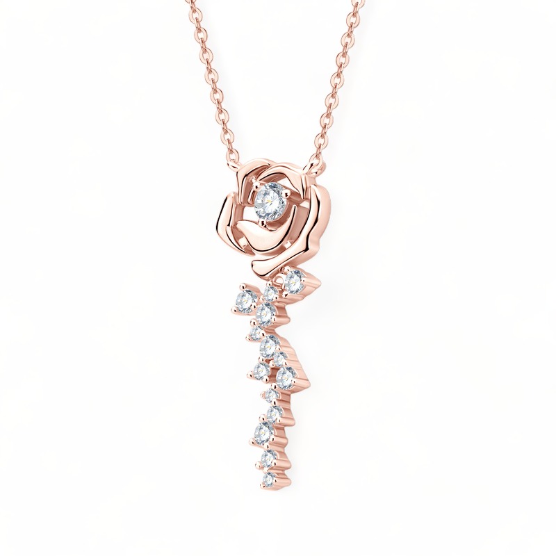 Rose Shape Moissanite Sterling Silver Chain Necklace