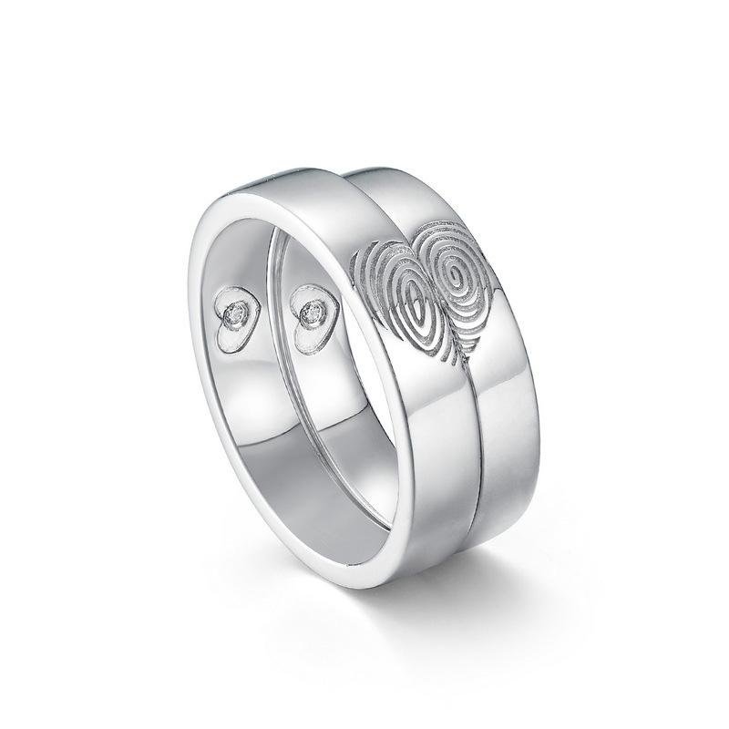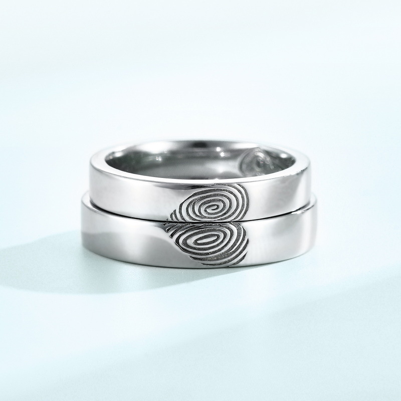 Heart Shaped Fingerprint Sterling Silver Rings for Couples