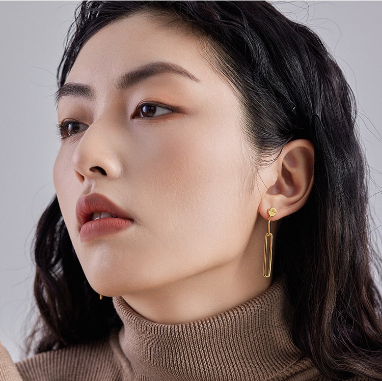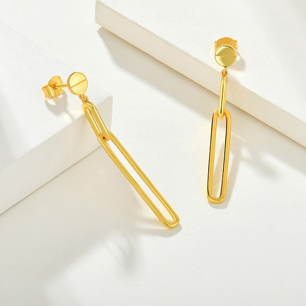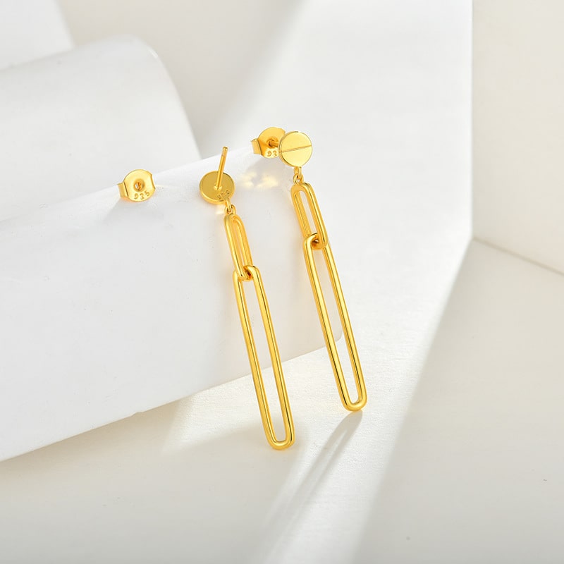 Simple design paper clip silver earrings plated with 18k gold, suitable for women of any age.