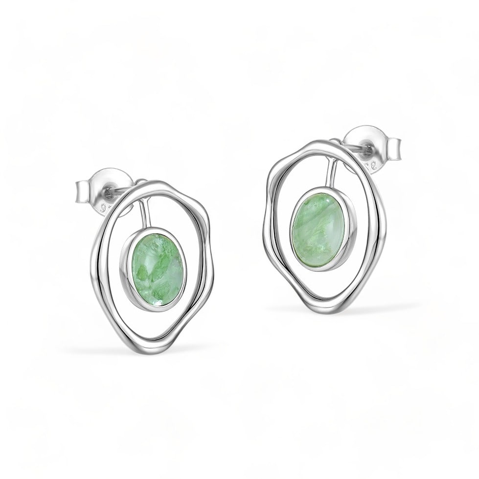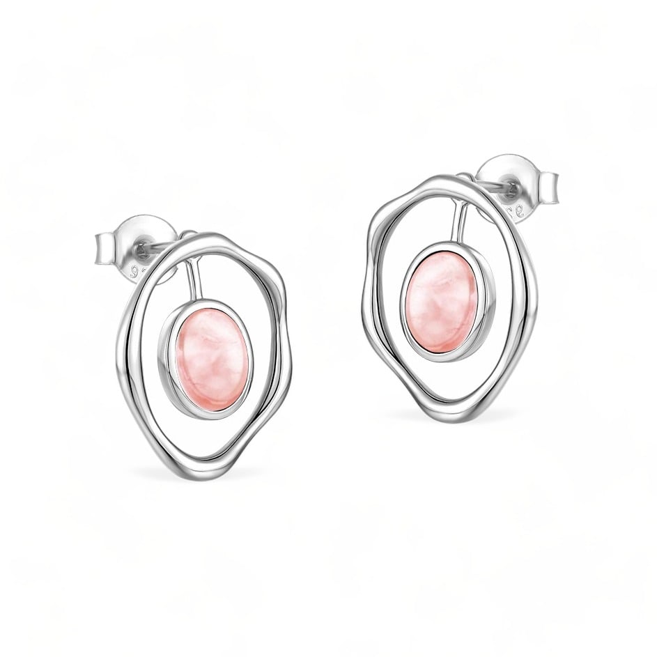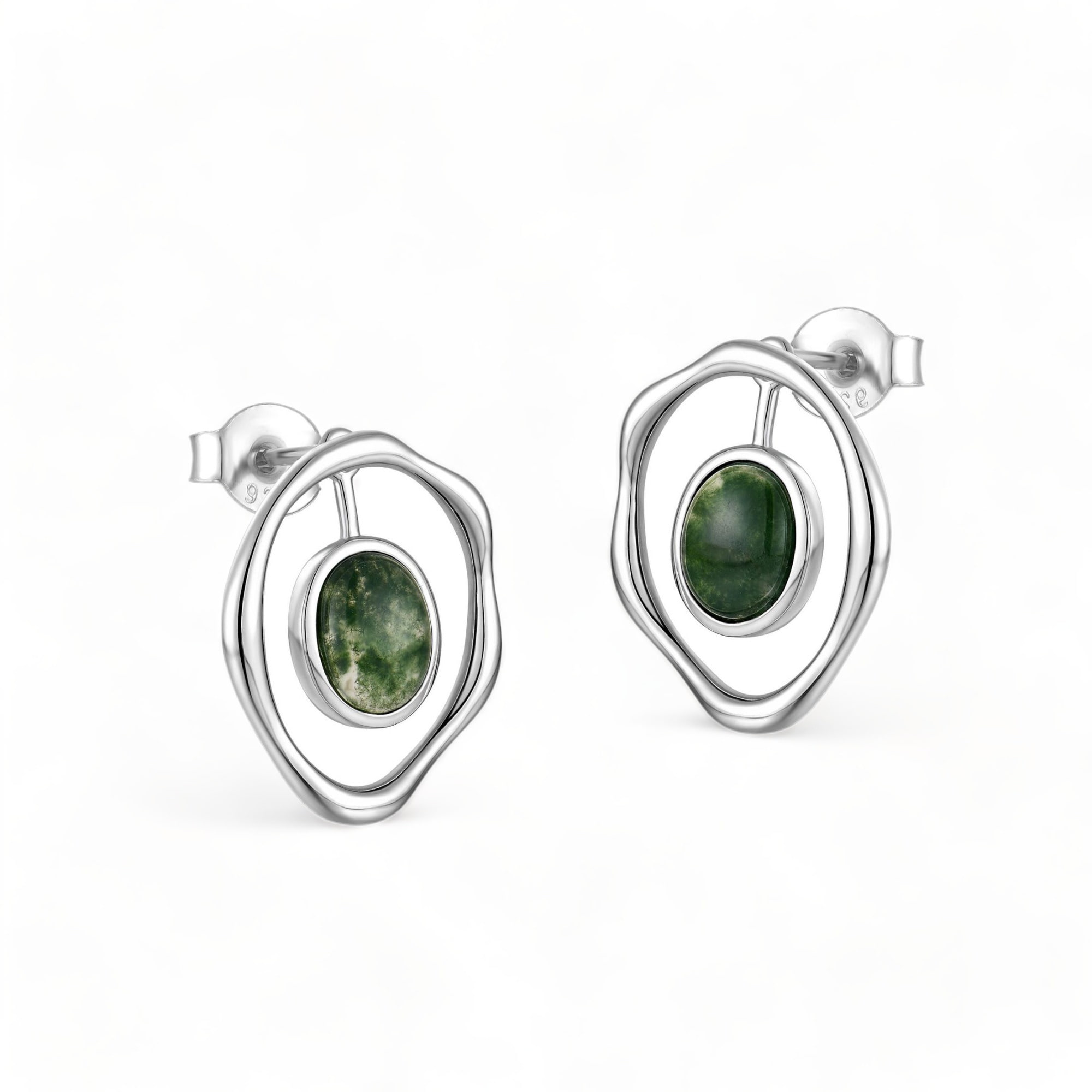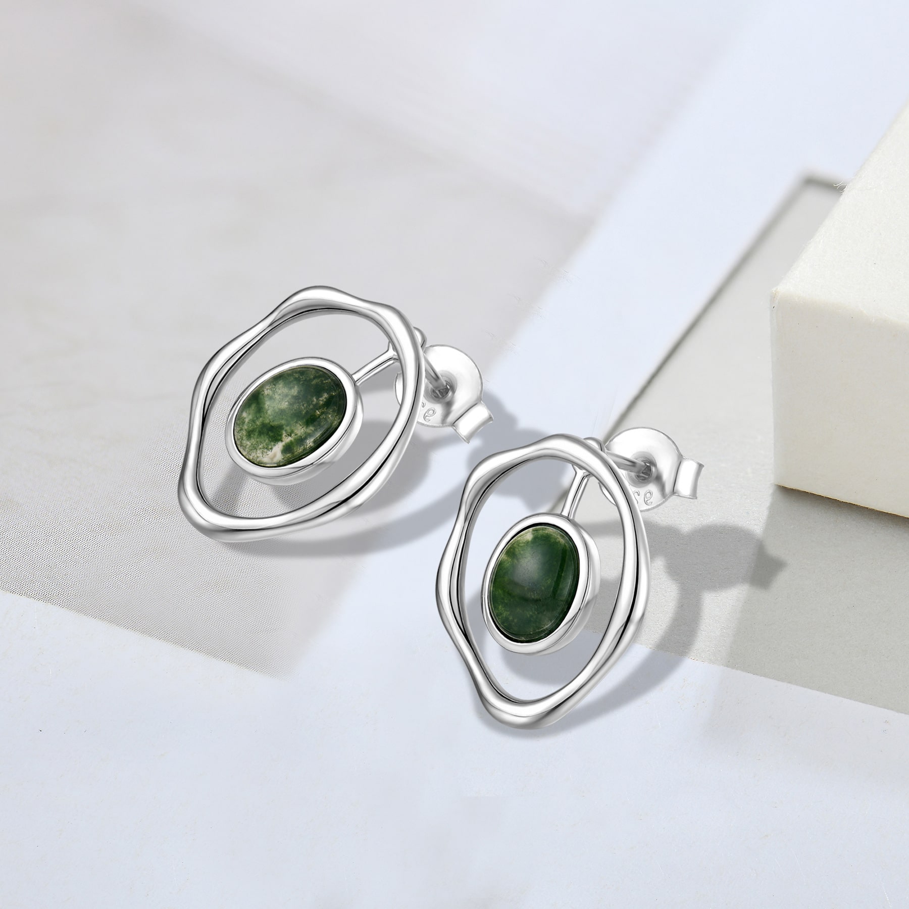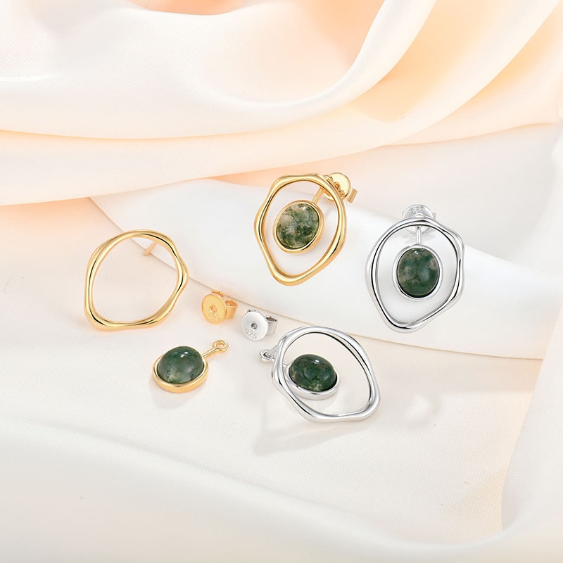 The earrings are made of sterling silver, the surface is plated with white gold or yellow gold, and the inlaid stone is agate stone.